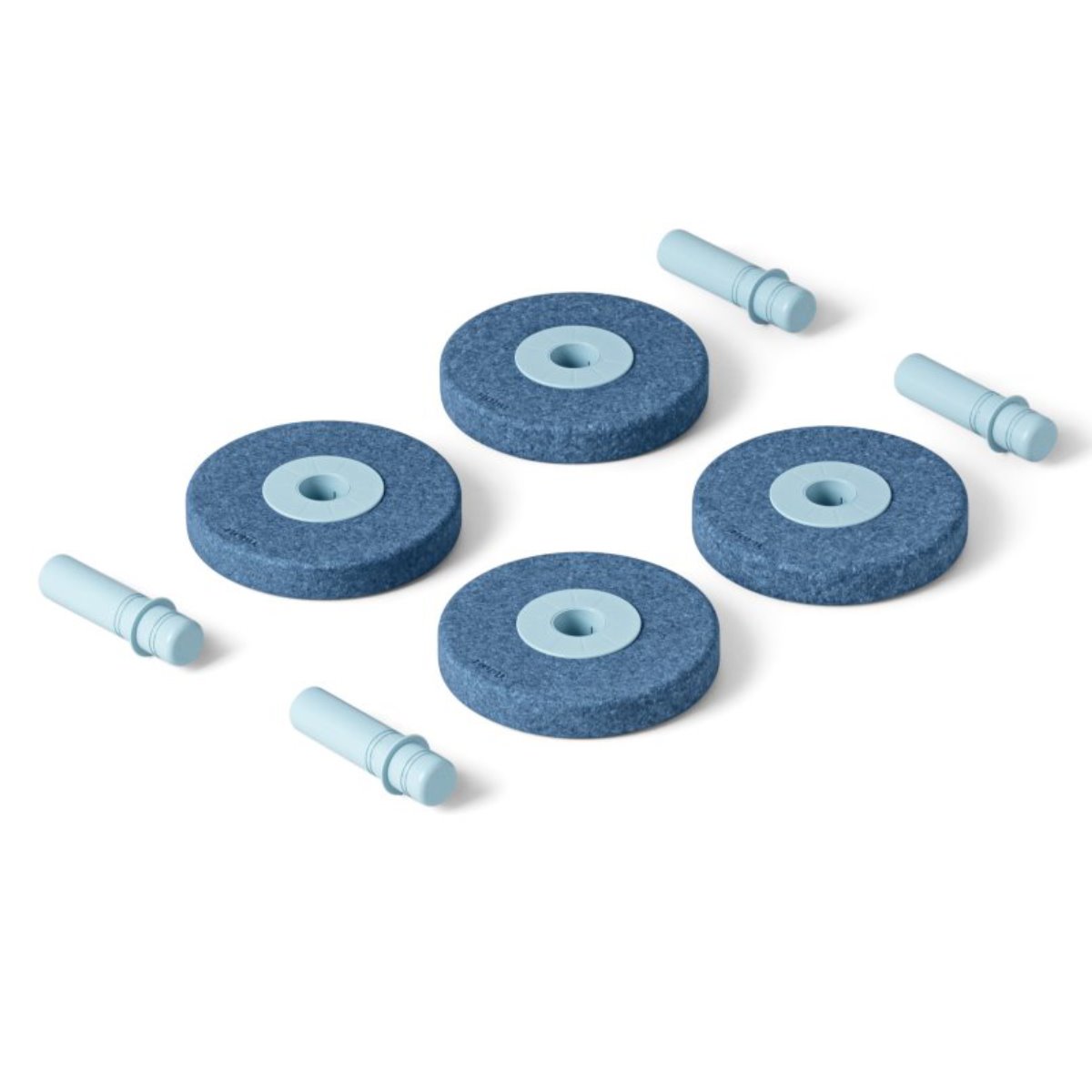 - 8 Elemente (4x Schaumstoffräder, 4x Verbindungsstifte)