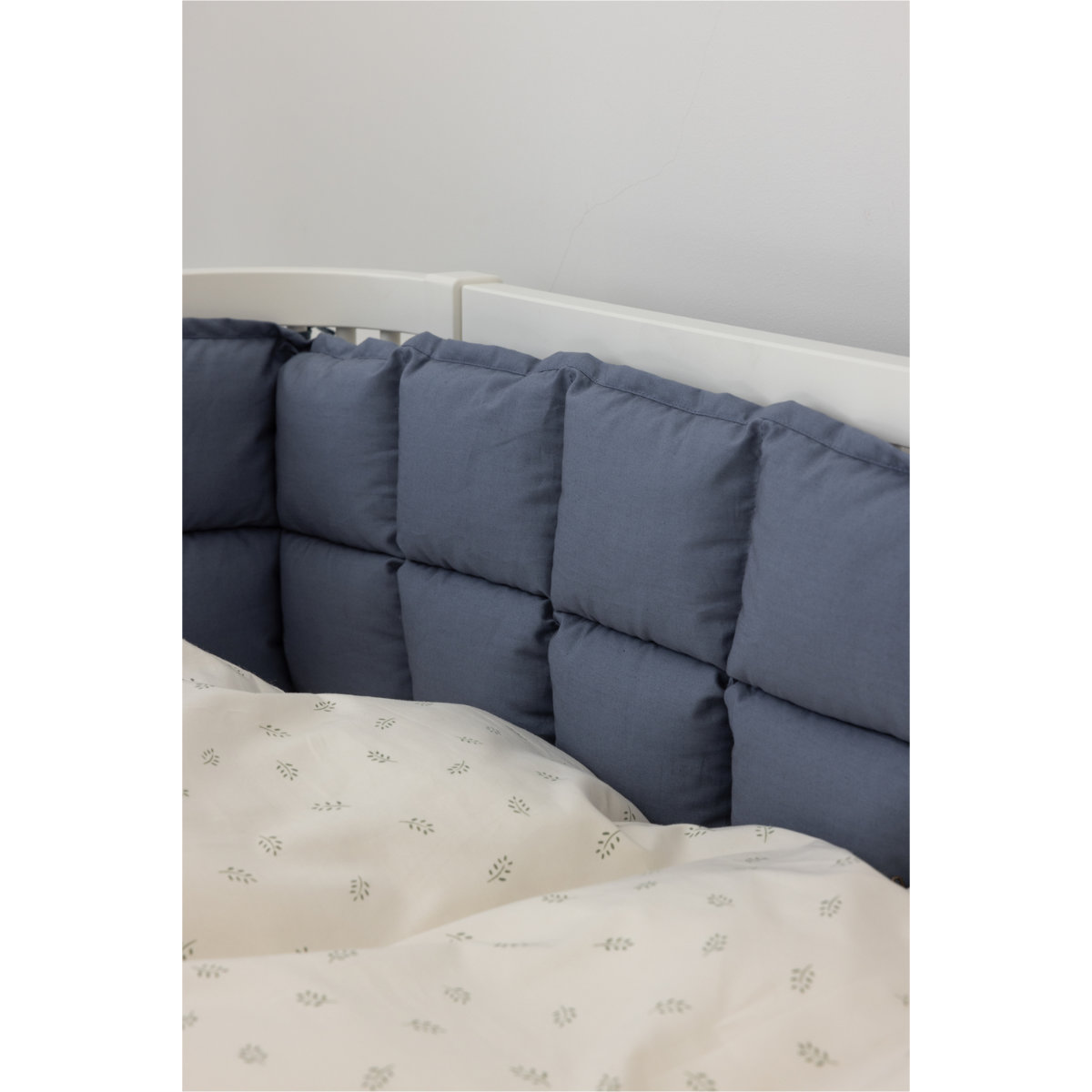 Mit einer Länge von 180 cm ist die Bettumrandung flexibel einsetzbar, sei es am Kopfende oder an der Bettseite. Die praktischen Bänder sorgen dafür, dass das Nestchen sicher am Gitterbett befestigt bleibt. Es passt sowohl in das Sebra Bett, Baby & Jr., als auch in Standard-Kinderbetten mit den Maßen 60 × 120 cm.