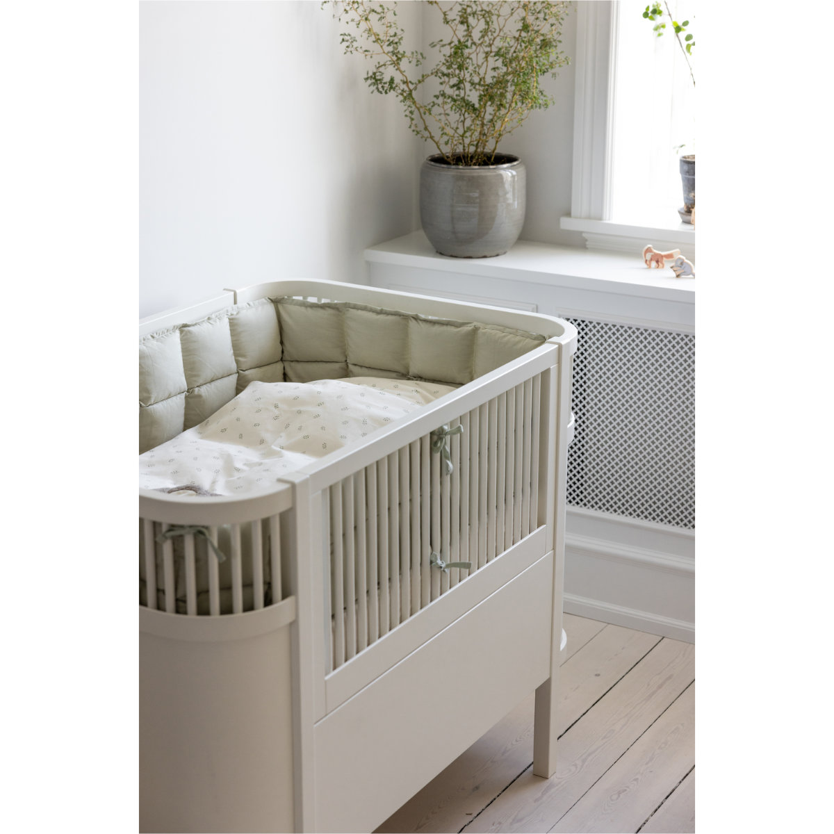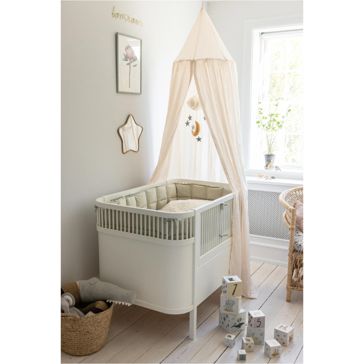 Diese atmungsaktive Bettumrandung von Sebra passt ideal in das Sebra Baby- & Juniorbett und in ein Standard-Kinderbett mit einer Größe von 60 x 120 cm. Mit der Sebra Bettumrandung schaffst du eine gemütliche Schlafoase für dein Kleines. Dieses Bettnestchen lässt sich auch an ein kleineres Bett anpassen, indem man es, z. B. am Fußende, überlappend hinlegt.