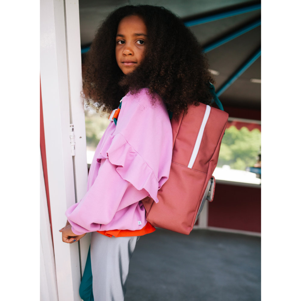 Der Sticky Lemon Rucksack Large für größere Kinder zeichnet sich durch sein farbenfrohes Design und seine praktischen Details aus. Er ist aus recycelten PET-Flaschen hergestellt. Auf der Vorderseite findest du eine zusätzliche Tasche. Der Sticky Lemon Kinderruck ist mit wasserdichtem Innenfutter gefertigt und mit einem stabilen YKK- Reißverschluss ausgestattet. Auf der Innenseite findest du einen elastischen Flaschenhalter und eine Tasche auf der gesamten Rückseite, die sich mit einem Klettverschluss verschließen lässt. Auf dem Namenschild kannst du Namen und Kontaktdaten notieren.