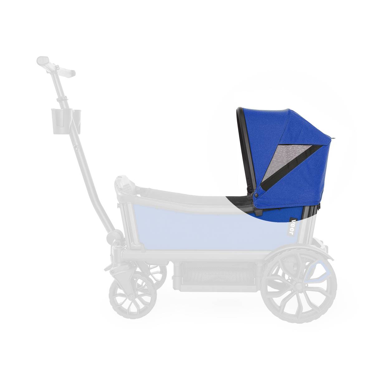 Das verstellbare Veer Sonnendach lässt sich schnell und intuitiv am Rahmen des Cruiser Hand & Bollerwagens befestigen und lässt sich leicht auf- und zuklappen. Pro Cruiser kannst du bis zu zwei Sonnendächer anbringen – einer über jedem Sitz. Ein Sichtfenster ermöglicht es dir, deine Kinder zu sehen und verborgene Magnete stellen sicher, dass das Fenster in der oberen Position bleibt.