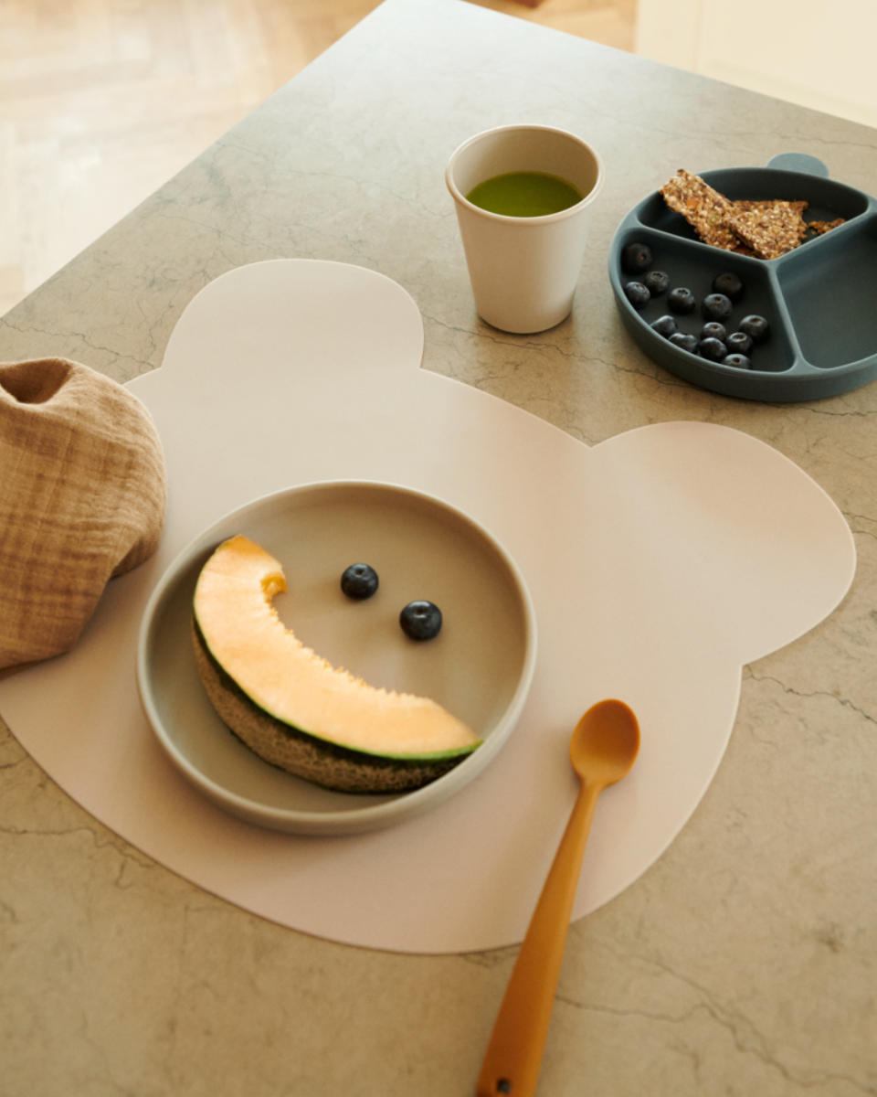 Der Stacy Divider Teller eignet sich perfekt, um verschiedene Speisen getrennt anzubieten. Die cleveren Unterteilungen helfen deinem Kind dabei, unterschiedliche Geschmäcker und Konsistenzen einzeln kennenzulernen. Die niedlichen Bärenmotive am Rand sorgen zusätzlich für Freude bei jeder Mahlzeit.