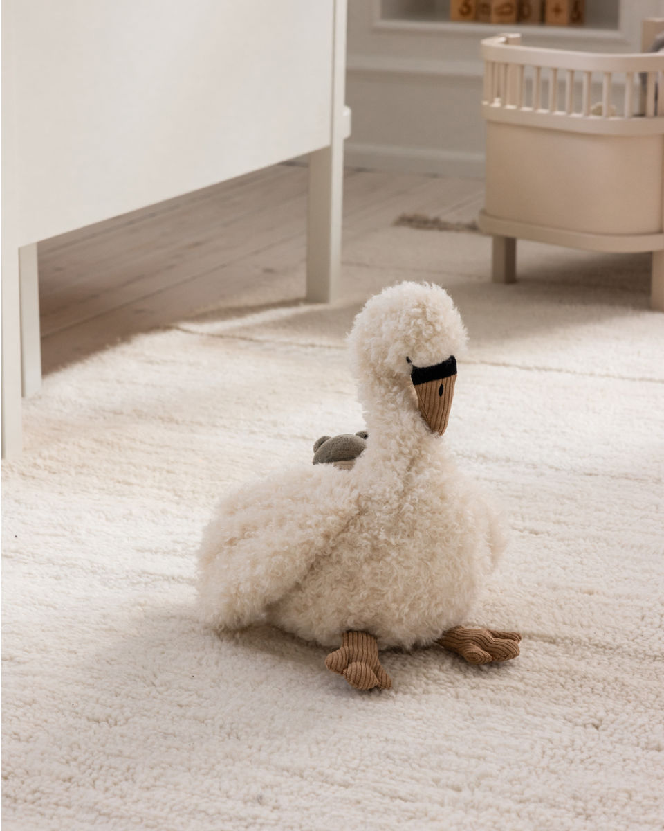 Lass die Fantasie deines Kindes fliegen! Der Sebra Aktivitäts-Schwan ist weit mehr als nur ein Plüschtier zum Liebhaben. Er ist ein durchdachter Spielgefährte, der speziell kreiert wurde, um die Sinne und die natürliche Neugier deines Babys anzuregen. Mit seinen weichen Formen und dem ikonischen dänischen Design wird er schnell zum Liebling in jedem Kinderzimmer.