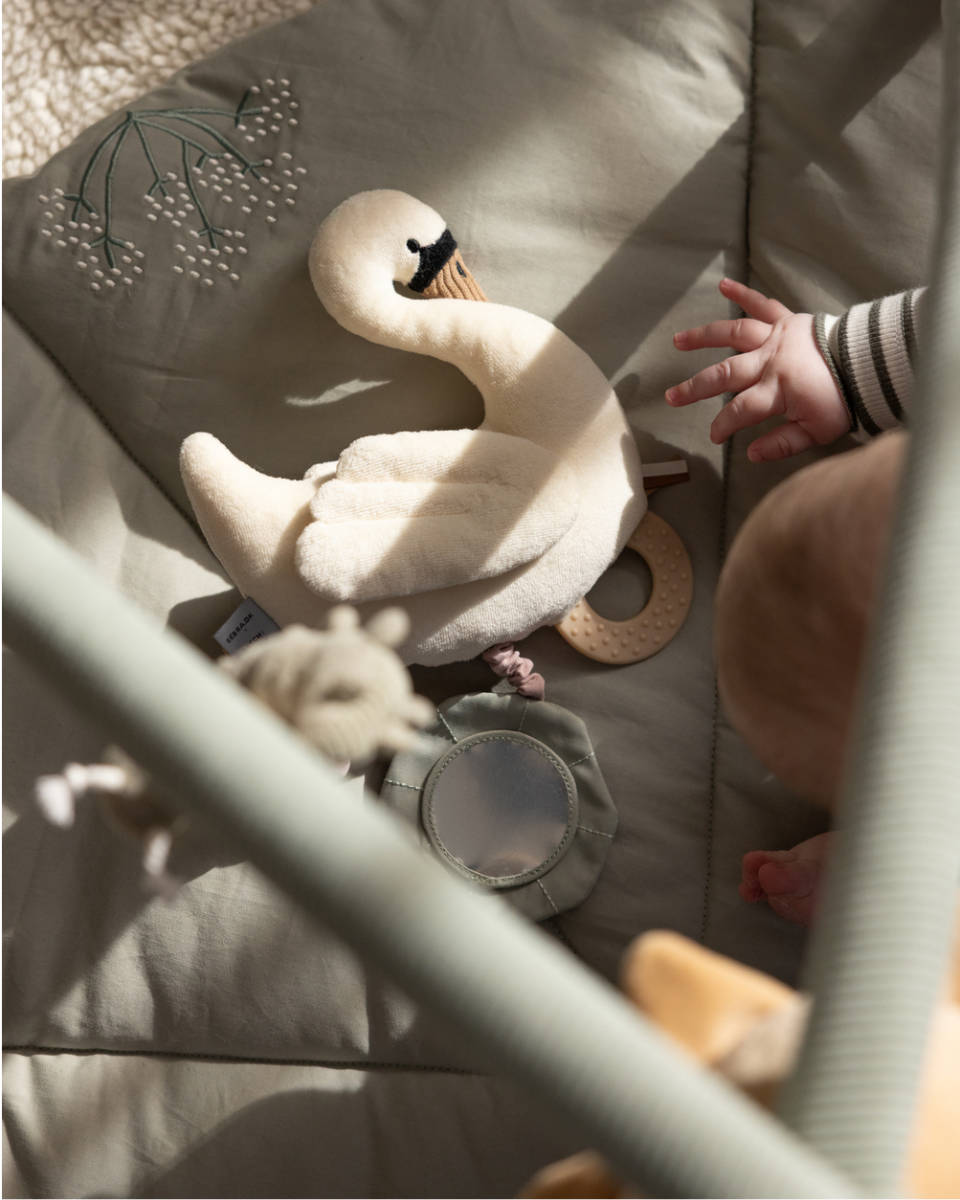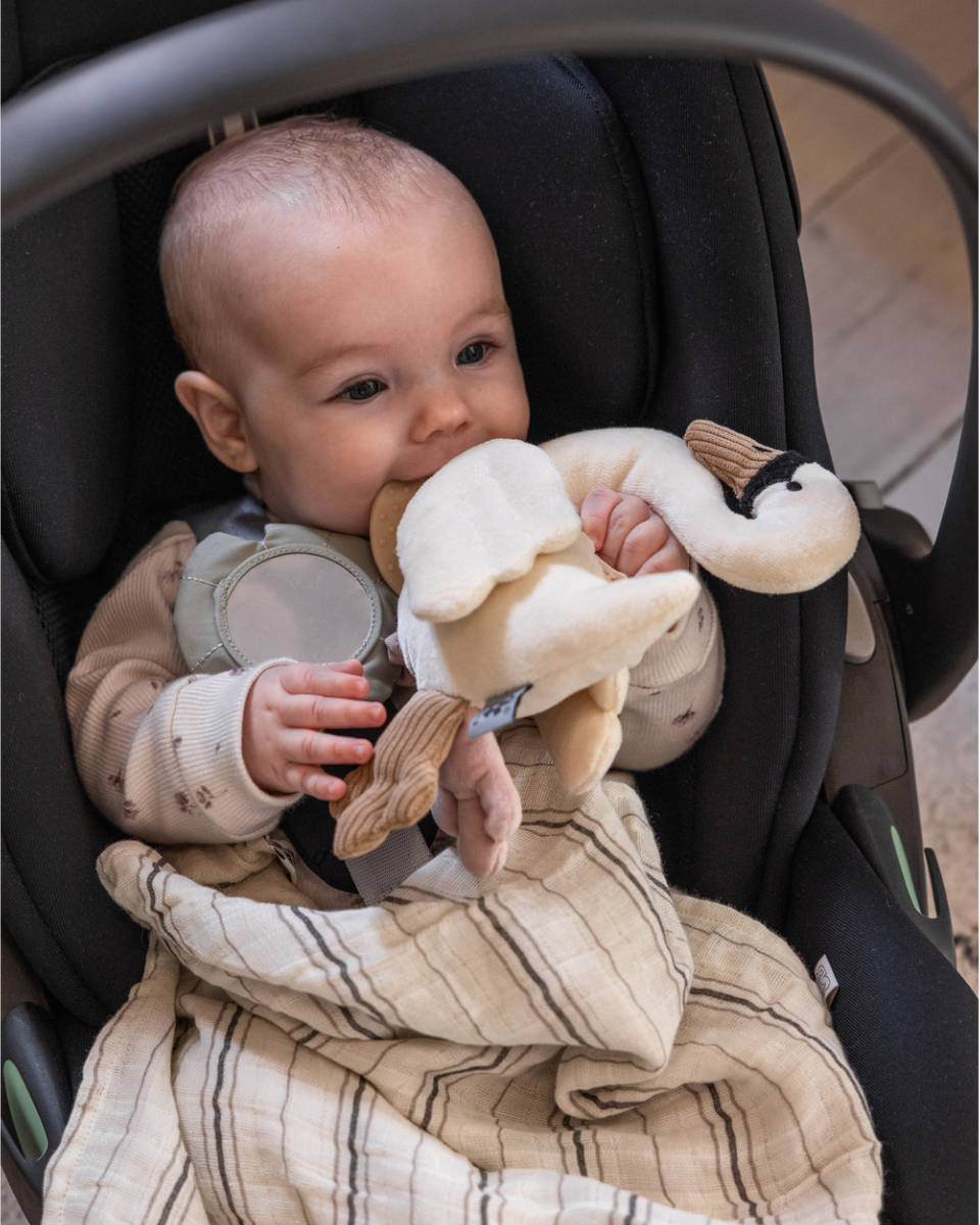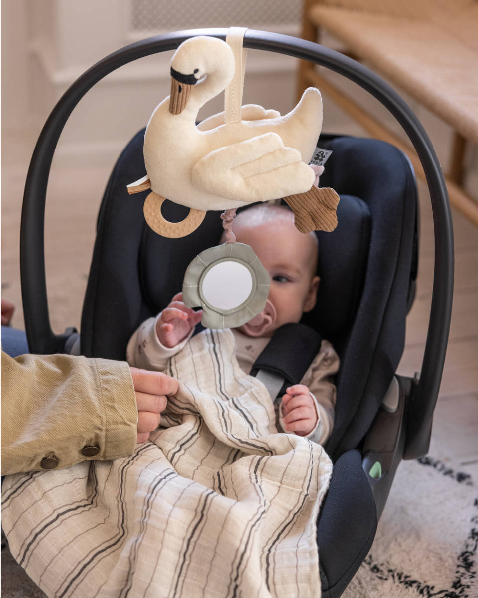 Das Sebra Aktivitätsspielzeug steht für uns sinnbildlich für „Play the day away!“. Es ist nicht nur ein dekorativer Hingucker am Kinderwagen, sondern ein durchdachtes Lern- und Entdeckungsspielzeug. Besonders die Vibrationsfunktion des Schwans – ausgelöst durch Ziehen am Spiegel – sorgt für staunende Blicke bei den Kleinsten. Ein langlebiges, hochwertiges Must-have für Eltern, die Wert auf Design, Sicherheit und Funktion legen.