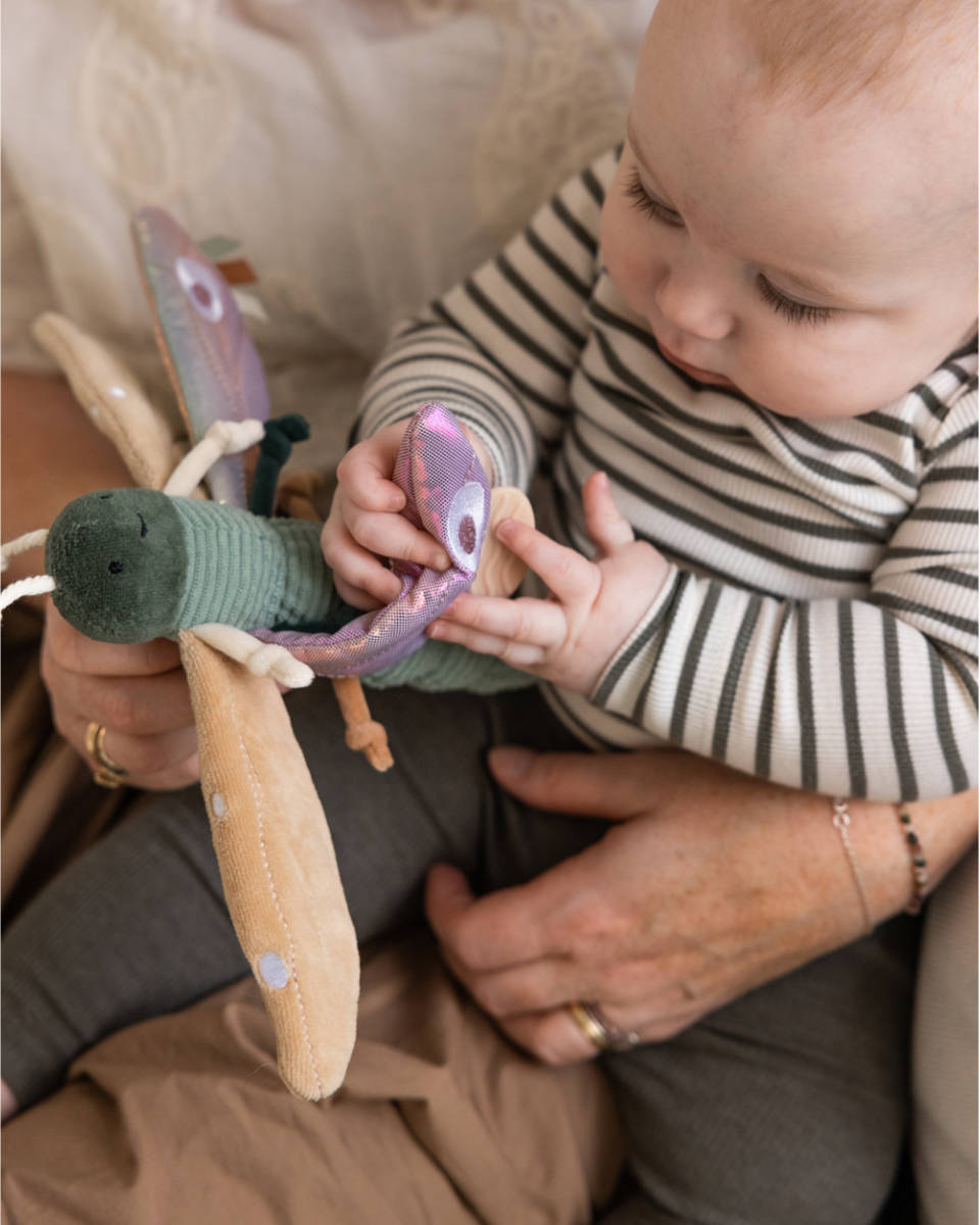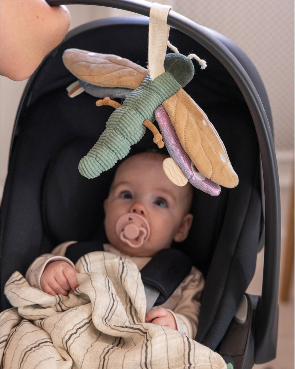 Ganz gleich, für welches Modell du dich entscheidest – dein Baby wird begeistert sein, die vielen Details zu erkunden. Der Schwan überzeugt mit knisternden Flügeln, unterschiedlichen Strukturen zum Fühlen sowie einem versteckten Spiegel im Blatt-Element. Die Libelle regt mit sanften Rasselgeräuschen und schimmernden Stoffen gezielt die akustische und visuelle Wahrnehmung an. Mithilfe des praktischen Klettverschlusses lässt sich das Spielzeug flexibel befestigen – genau dort, wo dein Baby es braucht.