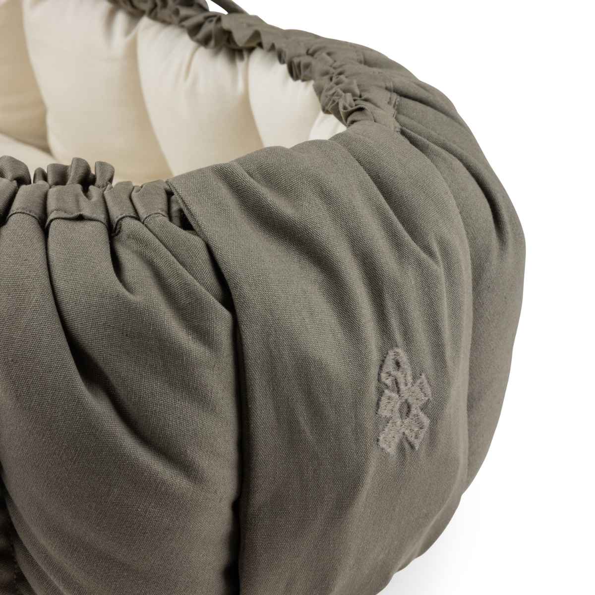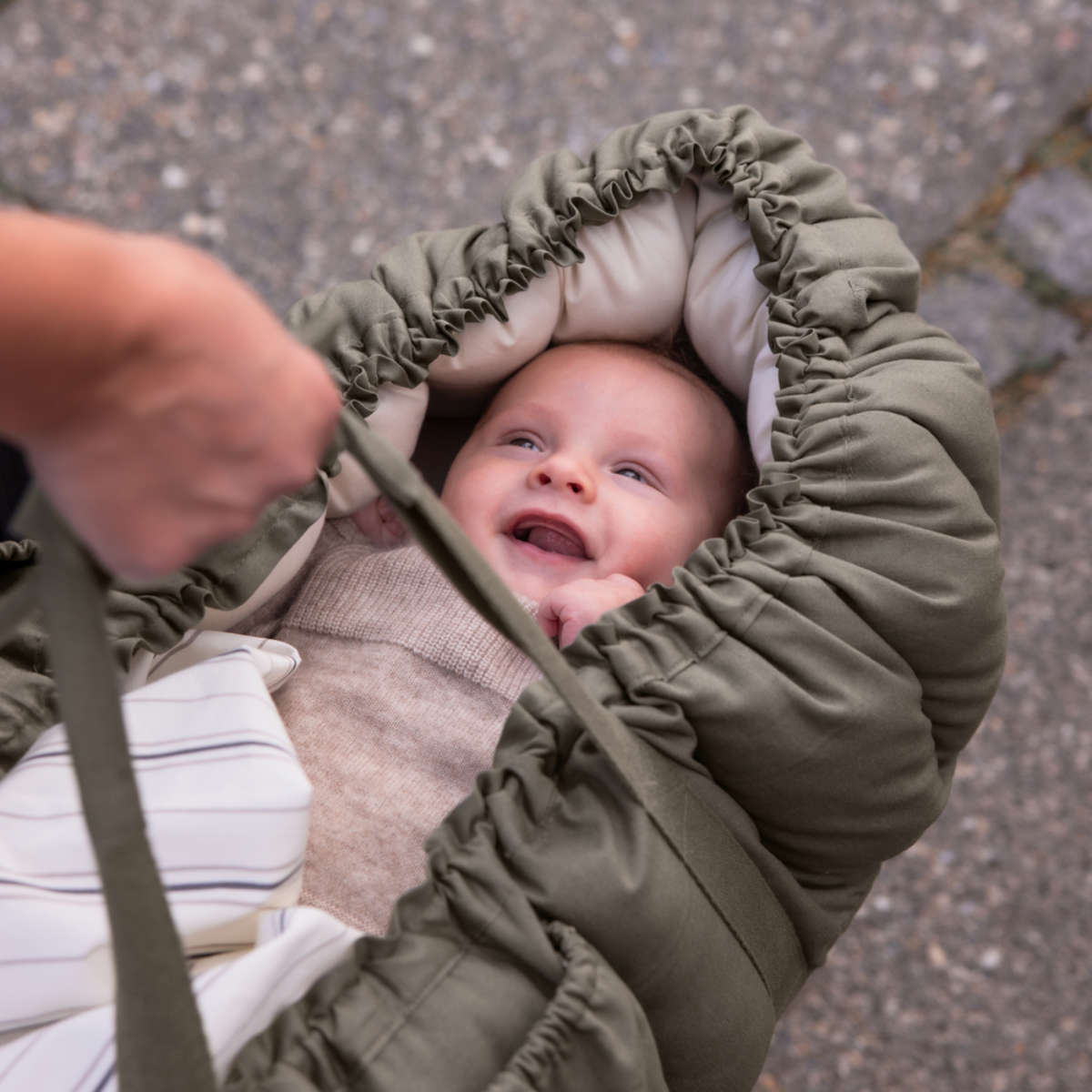 Das Babynest passt in die meisten Kinderwagen und Buggys und kann als traditioneller Babylift genutzt werden. Mit heruntergeklappten Seiten dient es als weiche Spielmatte, die auch als Wickelunterlage verwendet werden kann.