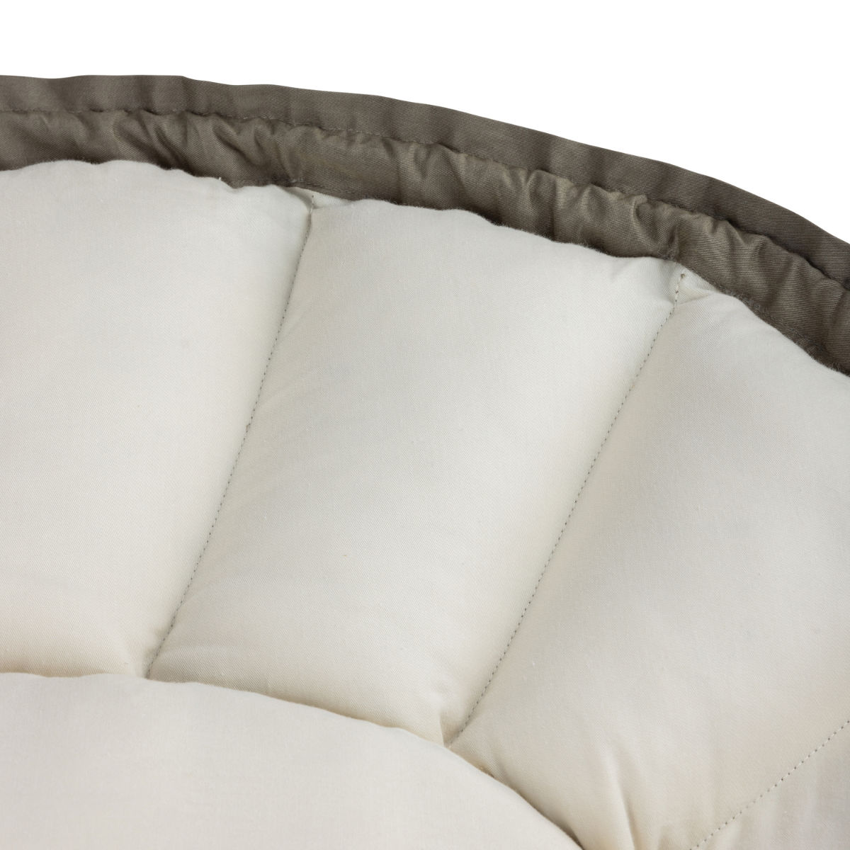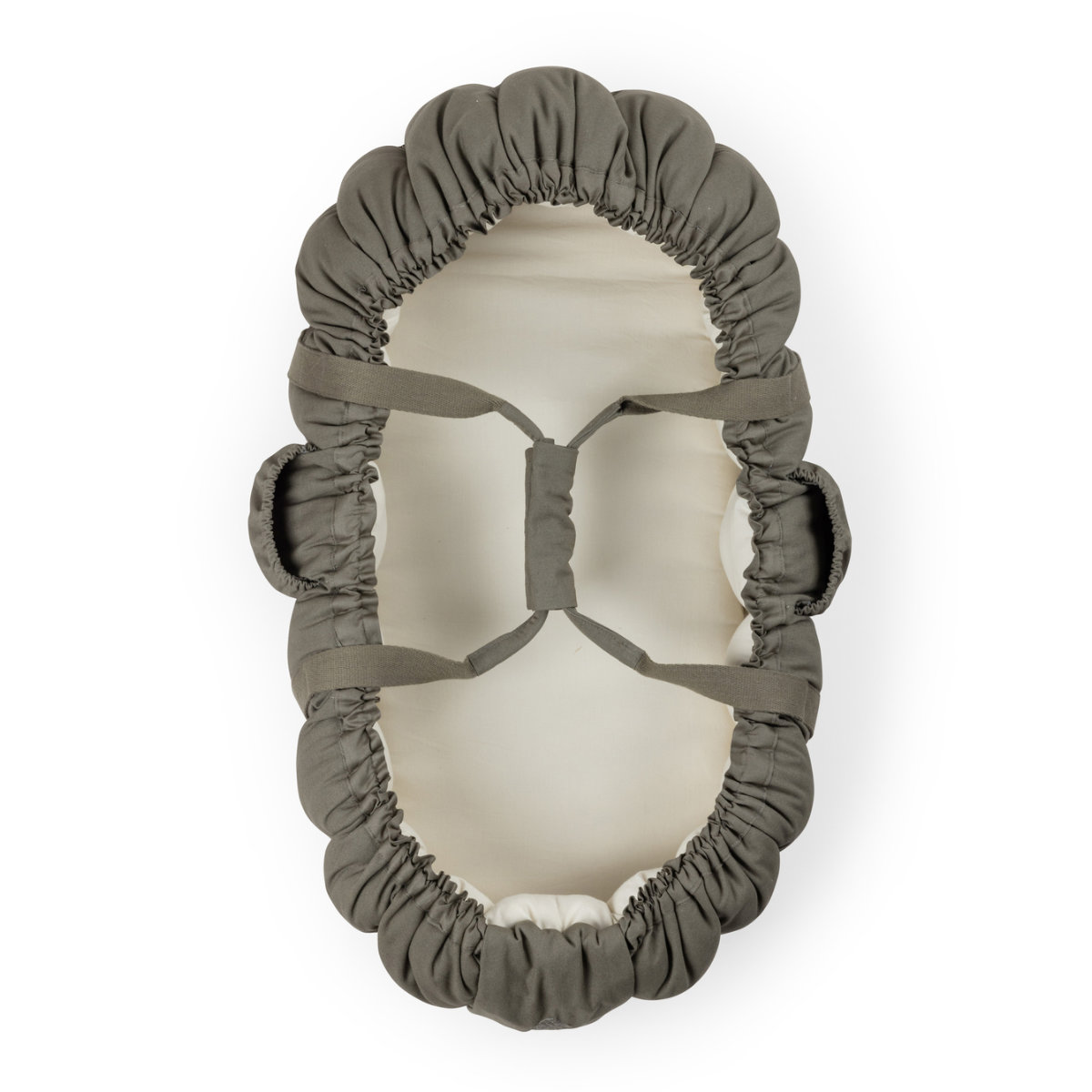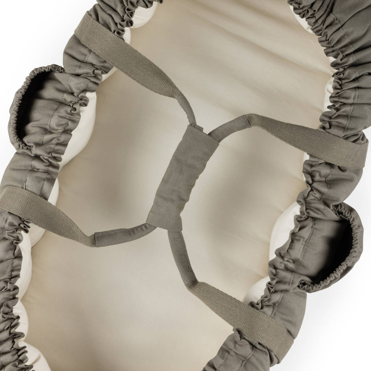 Das Sebra 3-in-1-Babynest hat Griffe, die sicher zusammengeschlossen werden können, um ein versehentliches Lösen zu verhindern. Die Kapokfüllung ist antibakteriell und ideal für Allergiker, da Hausstaubmilben darin nicht leben können. Kapok ist außerdem wärmeregulierend und sorgt für angenehmen Komfort.