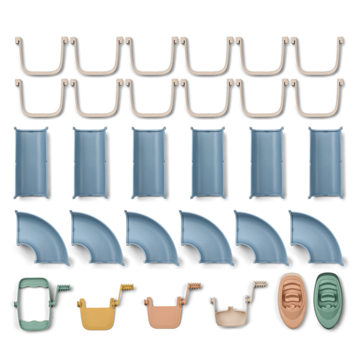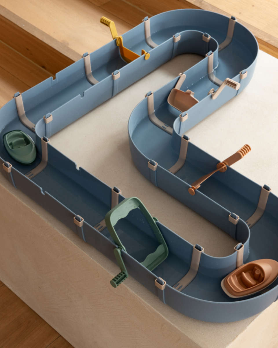 Wie steuert man ein Boot durch Kurven? Was passiert, wenn man das Wasserrad dreht? Mit dem Cassian Set lernen Kinder durch bloßes Ausprobieren. Die 12 enthaltenen Module (6 Geraden, 6 Kurven) lassen sich dank der präzisen Silikon-Dichtungen kinderleicht und stabil zusammenstecken. Dein Kind kann die Route immer wieder neu entwerfen, Schleusen bedienen und so seine motorischen Fähigkeiten sowie das Verständnis für physikalische Abläufe stärken.