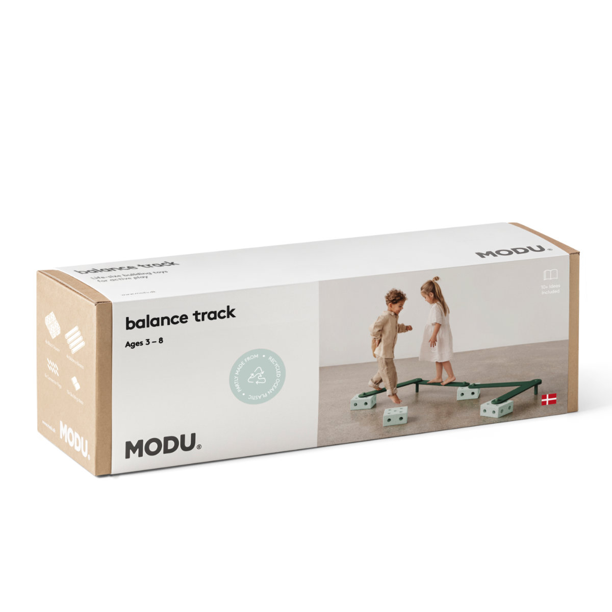 Das Balance Track Set ist mit anderen MODU-Sets kombinierbar und erweiterbar. Auf diese Weise wächst das Spielzeug mit deinem Kind mit und bietet kontinuierlich neue Herausforderungen und Spielmöglichkeiten.