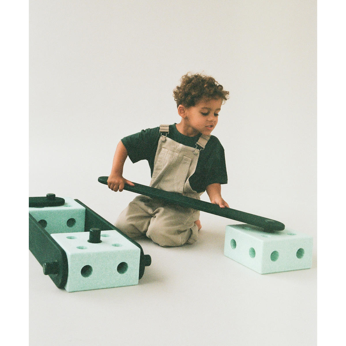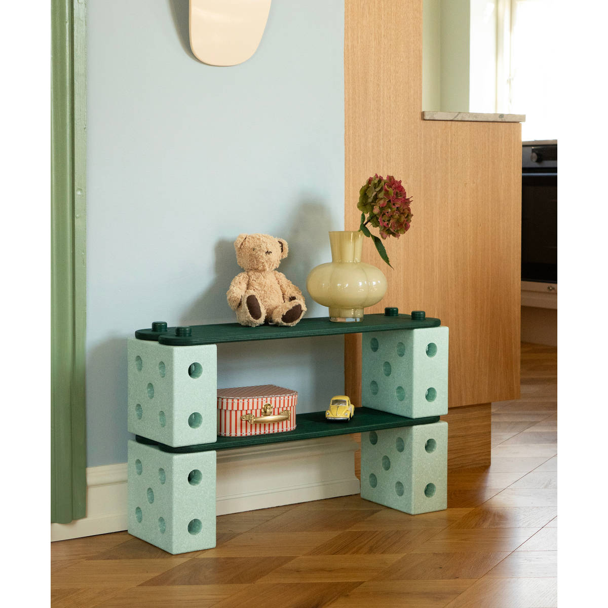 Wenn das Balance Track Set nicht genutzt wird, lässt es sich clever in praktische Möbelstücke verwandeln. Baue daraus ein Regal, eine Sitzbank oder sogar einen kleinen Tisch. So bleibt das Kinderzimmer stets ordentlich und das Set ist immer bereit für das nächste Abenteuer.
