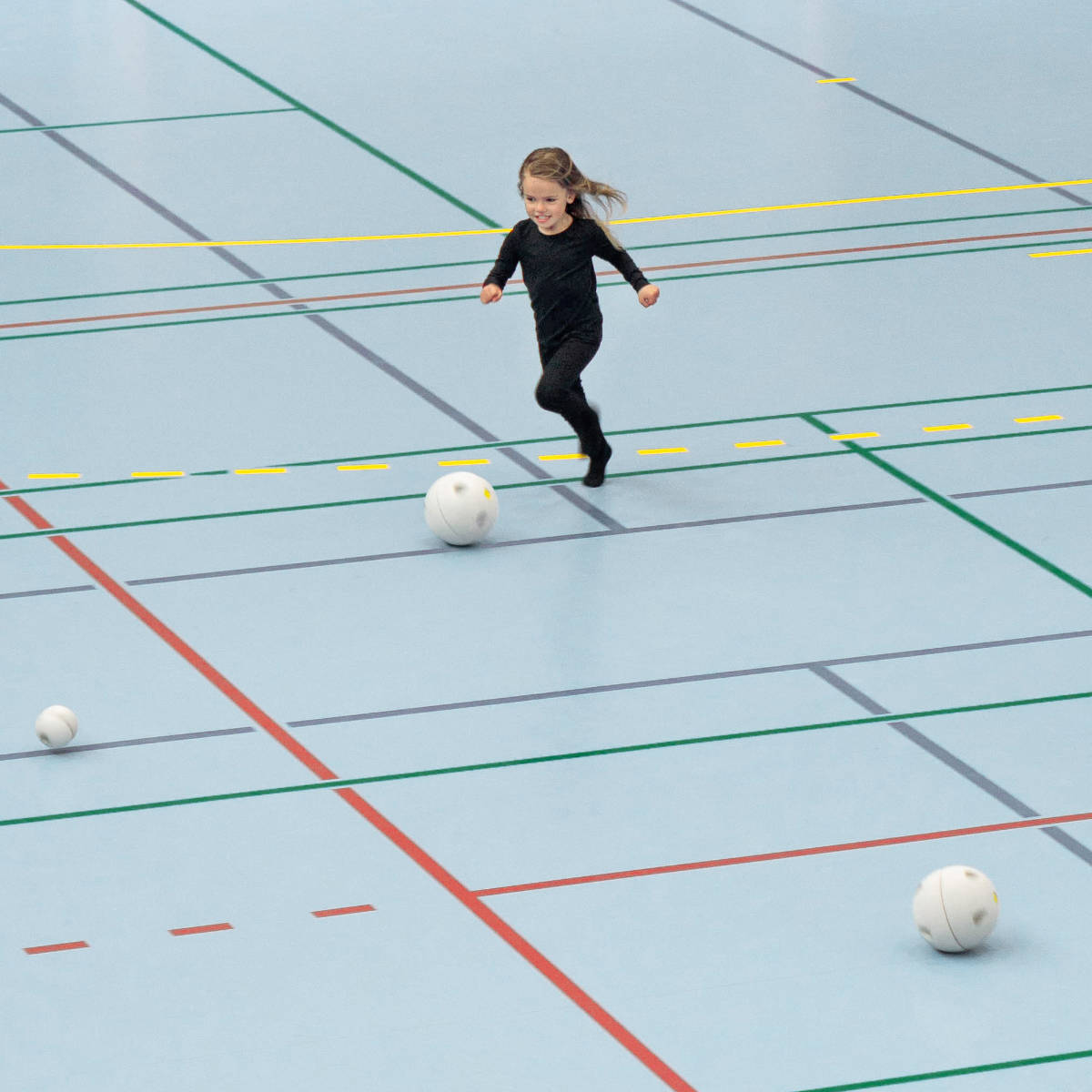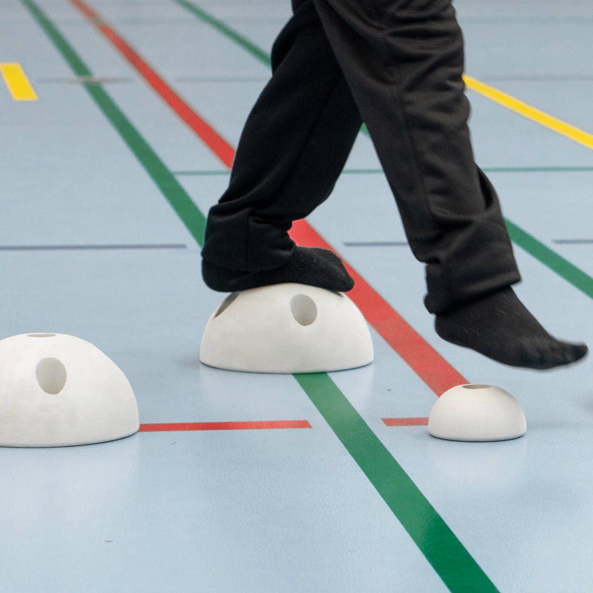 Sie können die halben Bälle auch zum Balancieren verwenden oder sie als Trittsteine benutzen, damit Ihr Kind sein Gleichgewicht trainieren kann.