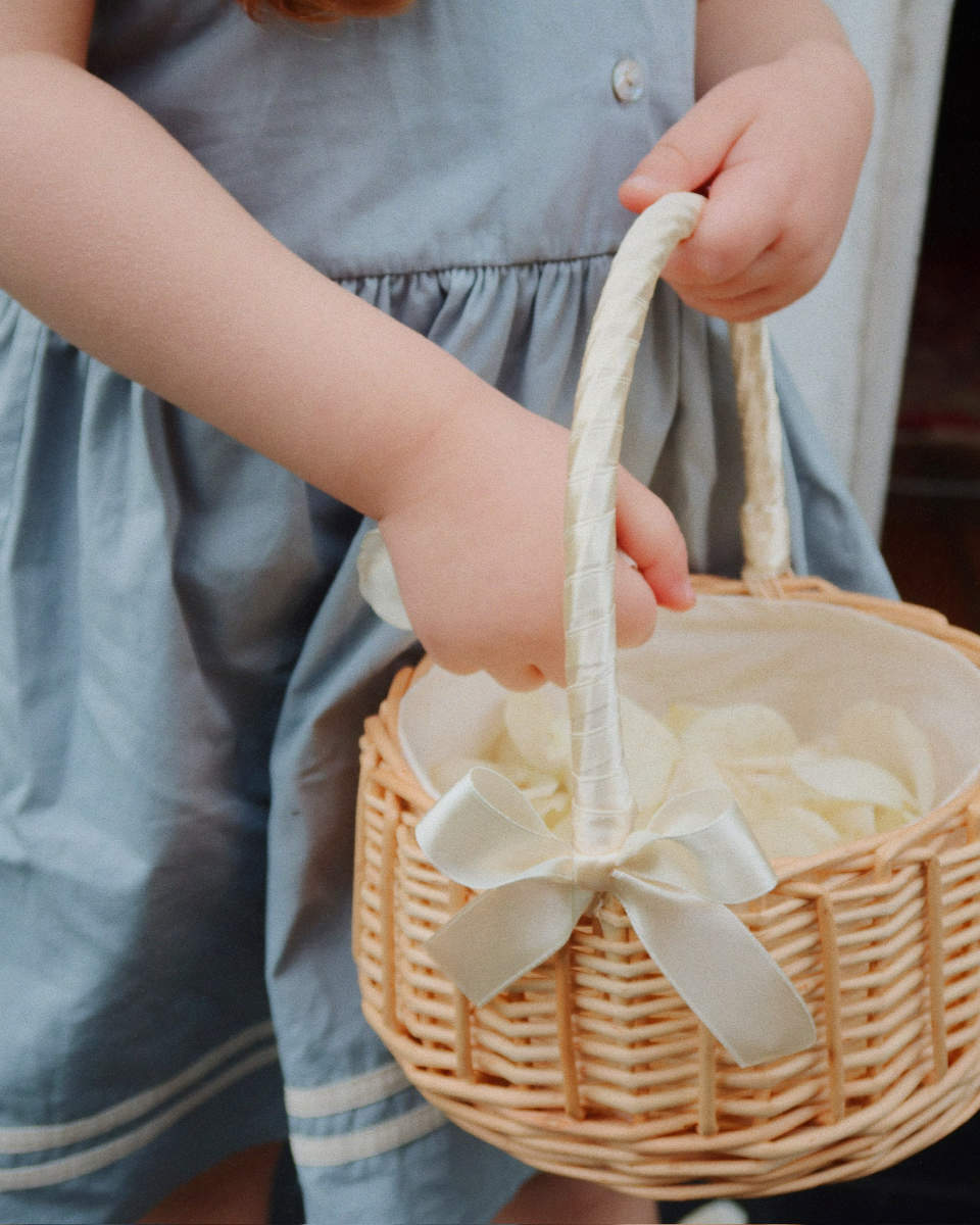 Durch sein leichtes Gewicht ist der Korb perfekt für Kinder geeignet. Dein Blumenkind kann ihn bequem tragen und wird zum Highlight der Zeremonie.