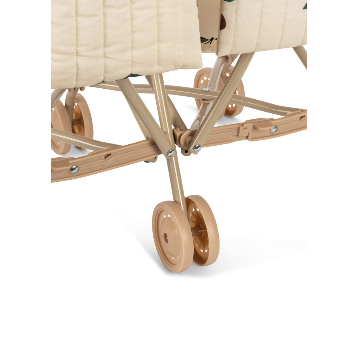 Mit doppelten Rädern an allen Beinen überzeugt der Puppenwagen durch seine Stabilität. So rollen kleine Puppeneltern ihre Schützlinge problemlos durch Haus, Garten oder unterwegs.