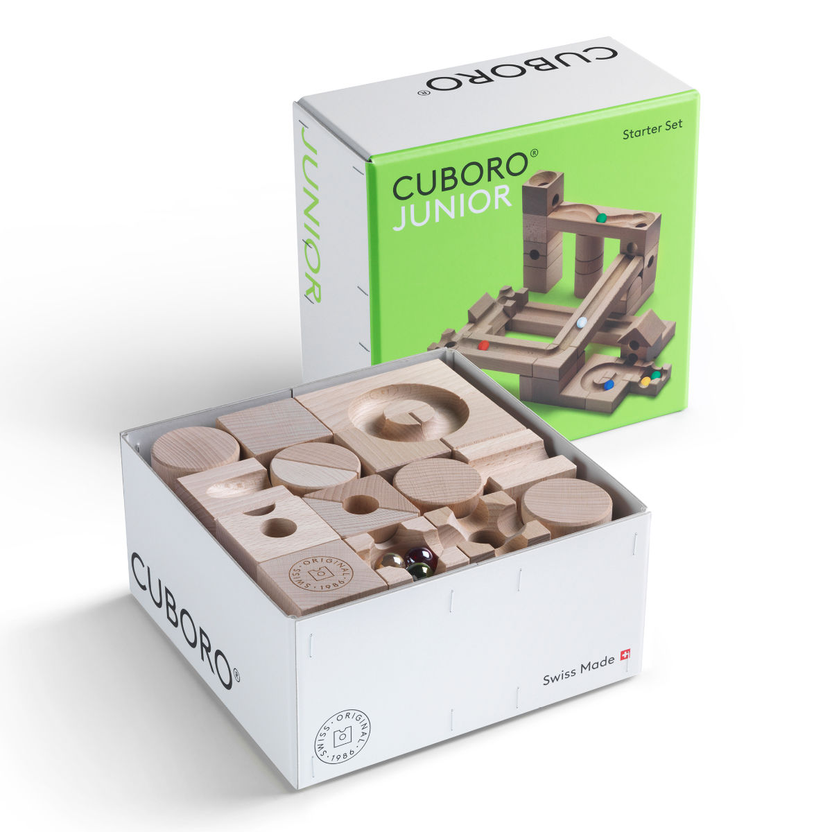 CUBORO JUNIOR Kugelbahn Starter Set – 40 Teile aus Schweizer Holz (ab 3 Jahren)