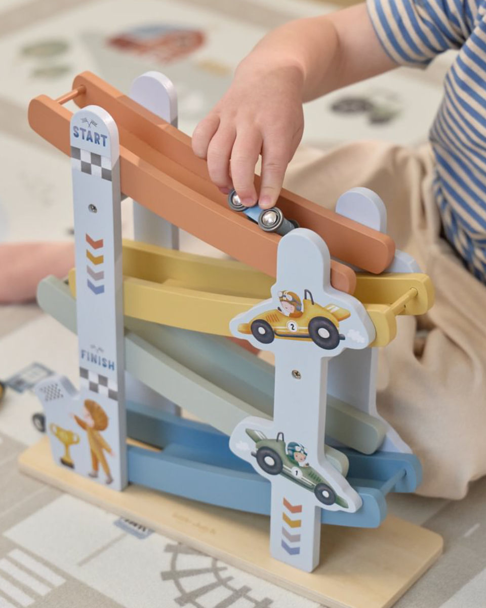 Verwandle dein Kind in einen kleinen Rennfahrer und schenke ihm die Freude am Spielen mit der Little Dutch Holz-Rennbahn. Bestelle jetzt und lass die Abenteuer beginnen!