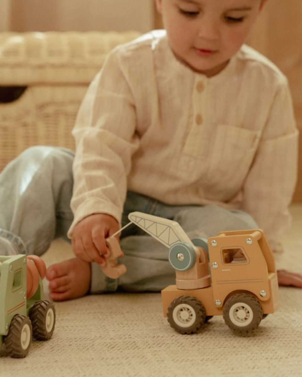 Hol dir den Little Dutch Kranwagen und lass dein Kind seine eigene kleine Baustelle entdecken – voller Fantasie, Bewegung und Spaß!