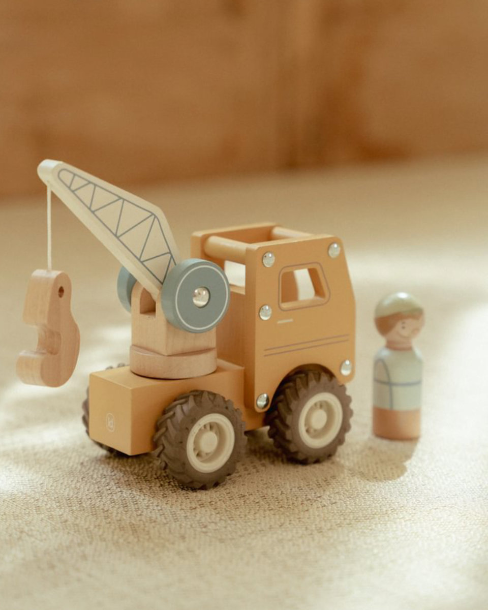 Little Dutch Kranwagen mit Figur aus FSC-Holz – Spielspaß für kleine Baumeister