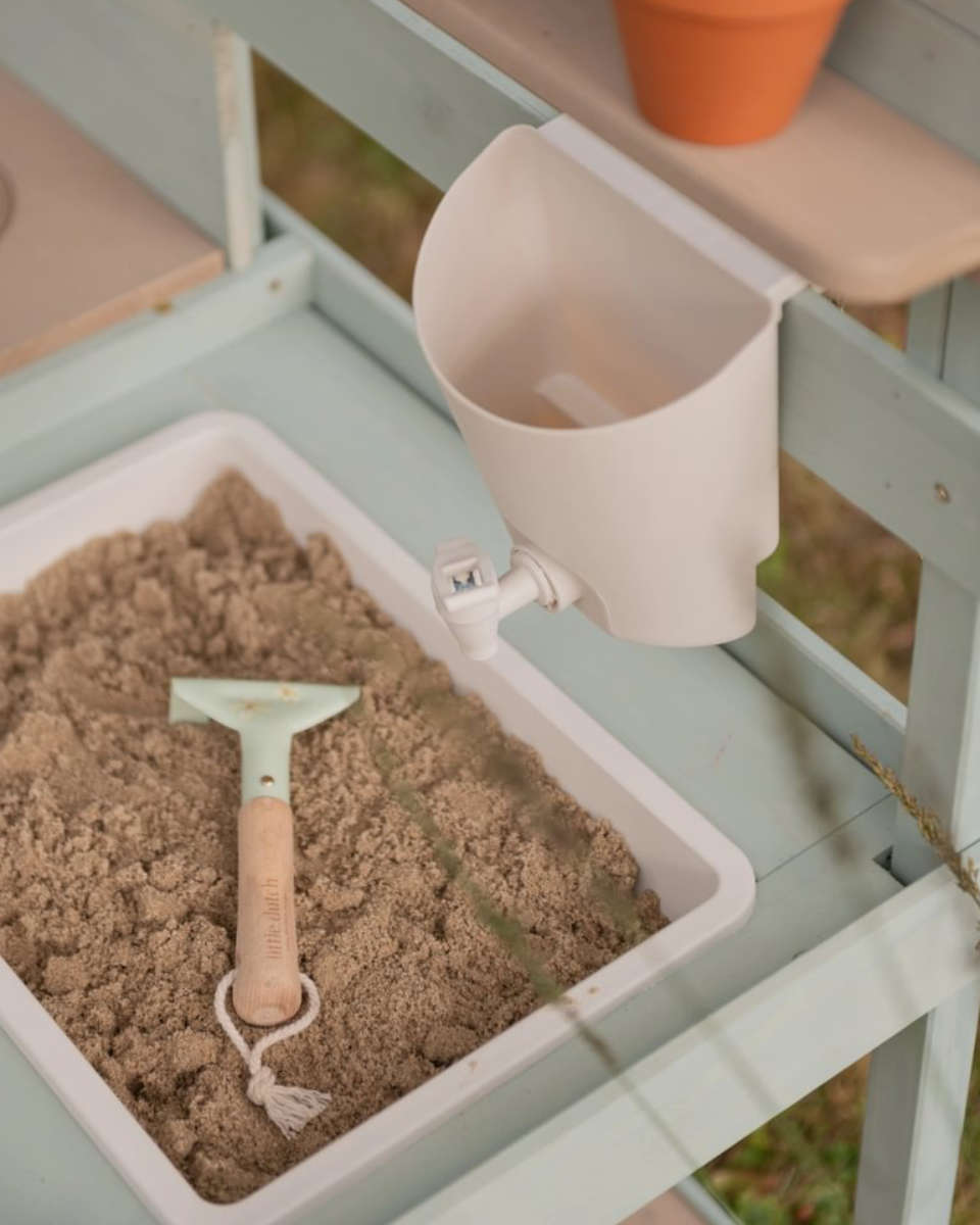 Du liebst es, im Garten zu werkeln und mit Erde zu spielen? Dann ist die Little Dutch Outdoor Küche aus FSC-Holz genau das Richtige für dich! Sie ist dem Design eines echten Küchenherds nachempfunden und bietet kleinen Nachwuchsköchen alles, was sie benötigen, um fantastische Matschkreationen und Sandkuchen zuzubereiten.