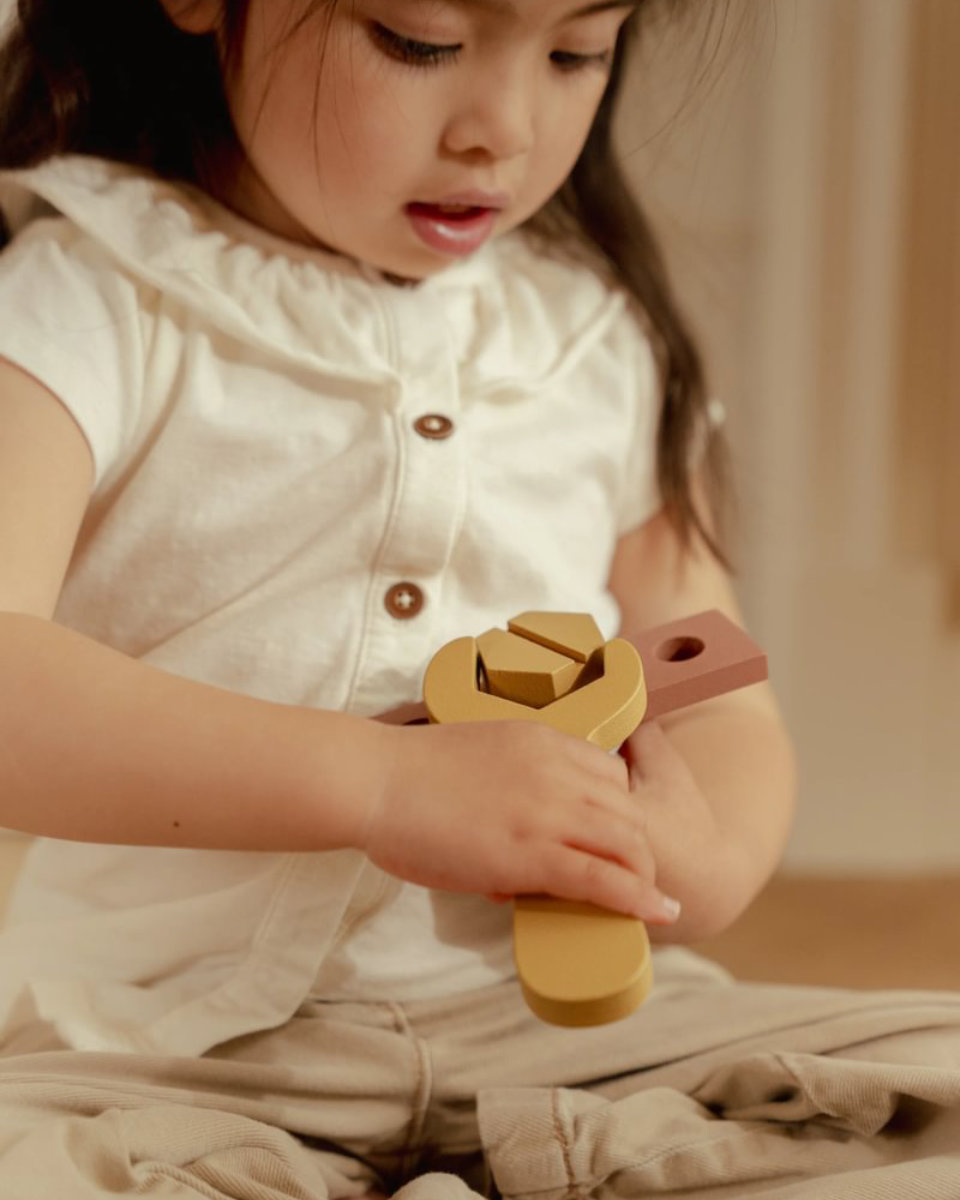 Die Werkzeugkiste ist aus FSC-zertifiziertem Holz gefertigt, stabil und langlebig. Dank der glatten Oberfläche und hochwertigen Verarbeitung ist sie besonders sicher und angenehm für kleine Hände.