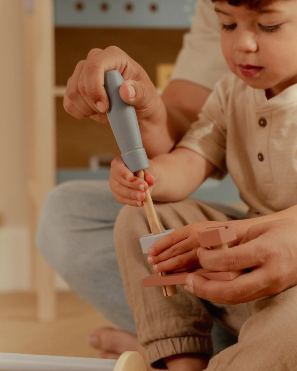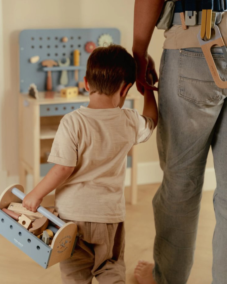 Mit der Little Dutch Werkzeugkiste aus FSC-Holz können Kinder schon ab 2 Jahren in die Rolle kleiner Handwerker schlüpfen. Hämmern, Schrauben und Ausprobieren – dieses Set bringt Fantasie und Kreativität ins Spielzimmer.
