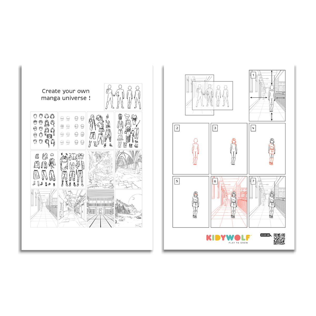 In der Manga Edition gestalten Kinder ihre eigenen Held*innen, inspiriert von der Welt des Manga. Dank eines cleveren Systems aus transparenten Schablonen lassen sich Gesichter, Frisuren, Kleidung und Gesichtsausdrücke beinahe unbegrenzt kombinieren.