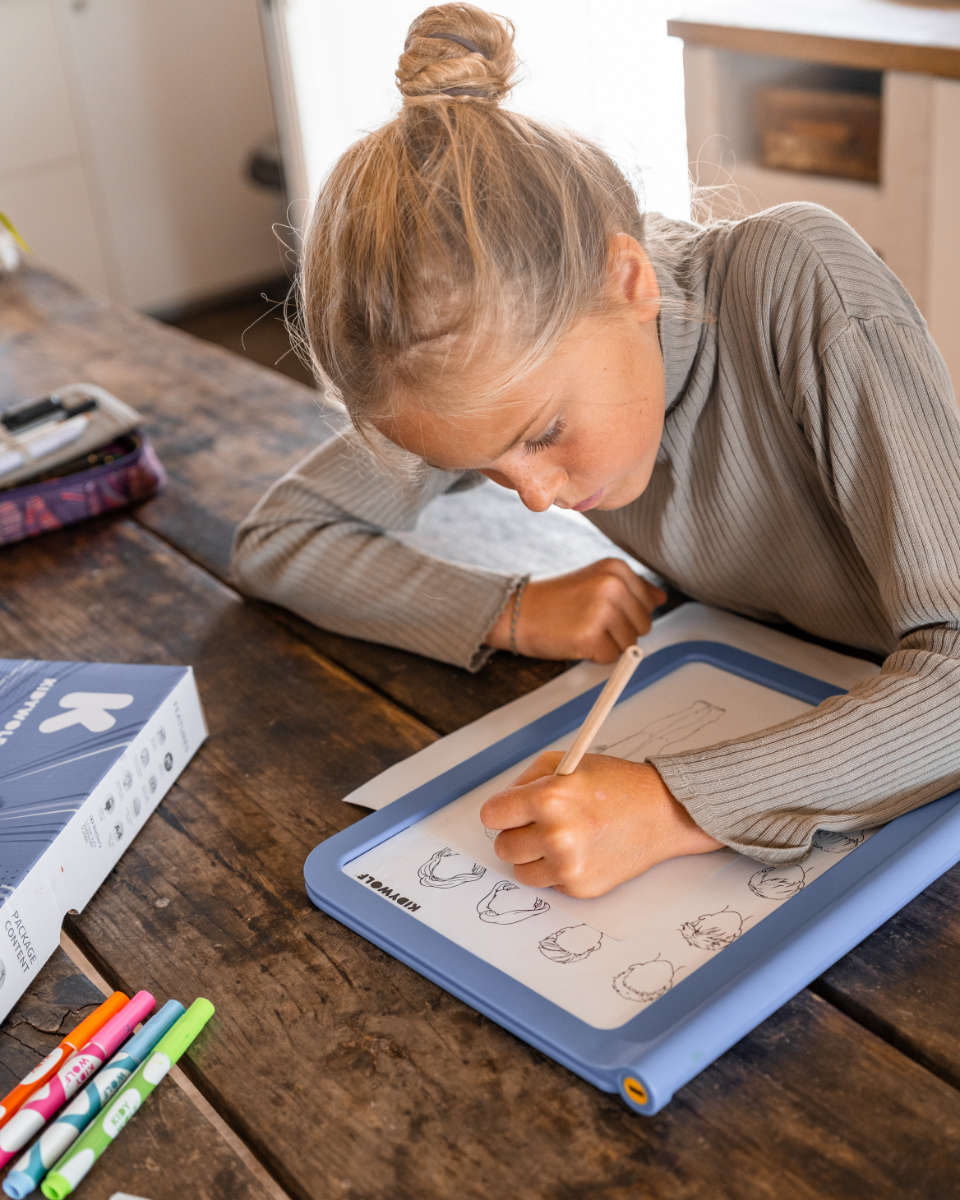 Der KidyDraw Pro Green eignet sich hervorragend zum Üben und Lernen – mit Vorlagen für Buchstaben, Zahlen und Zeichnungen. Die Pink Fashion Edition lässt Kinder zu kleinen Modedesigner*innen werden: Mit über 1.000 Kombinationsmöglichkeiten aus Silhouetten, Outfits und Accessoires entsteht immer wieder ein frischer Look.