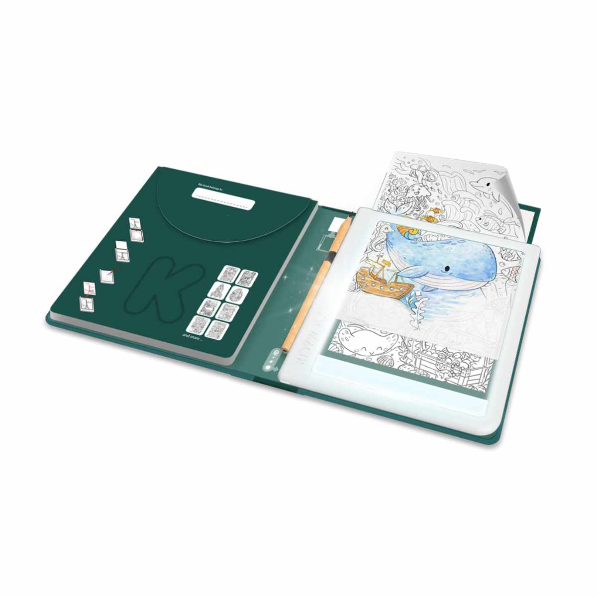 Das Kidydraw überzeugt durch seine funktionale Gestaltung. Es ist in ein handliches Booklet eingebettet, in dem das magnetische und abnehmbare Leuchttablett sicher fixiert ist. Jede Version des Zeichentischs enthält 30 verschiedene Zeichnungen, die speziell auf eine Altersgruppe abgestimmt sind. Je nach gewählter Variante (6+, 8+ oder 10+) passt sich der Zeichentisch optimal an die Fähigkeiten deines Kindes an.