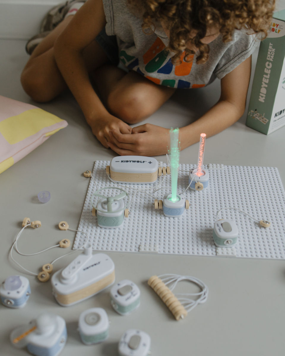 Mit dem Kidywolf Kidyelec-Pro Expert Set wird Technik lebendig. Kinder ab 8 Jahren bauen eigene Schaltkreise, verbinden Bausteine und erleben direkt, wie LEDs aufleuchten oder Propeller sich bewegen. So wird aus Entdeckerdrang echtes Wissen – spannend, anschaulich und voller Spielspaß.