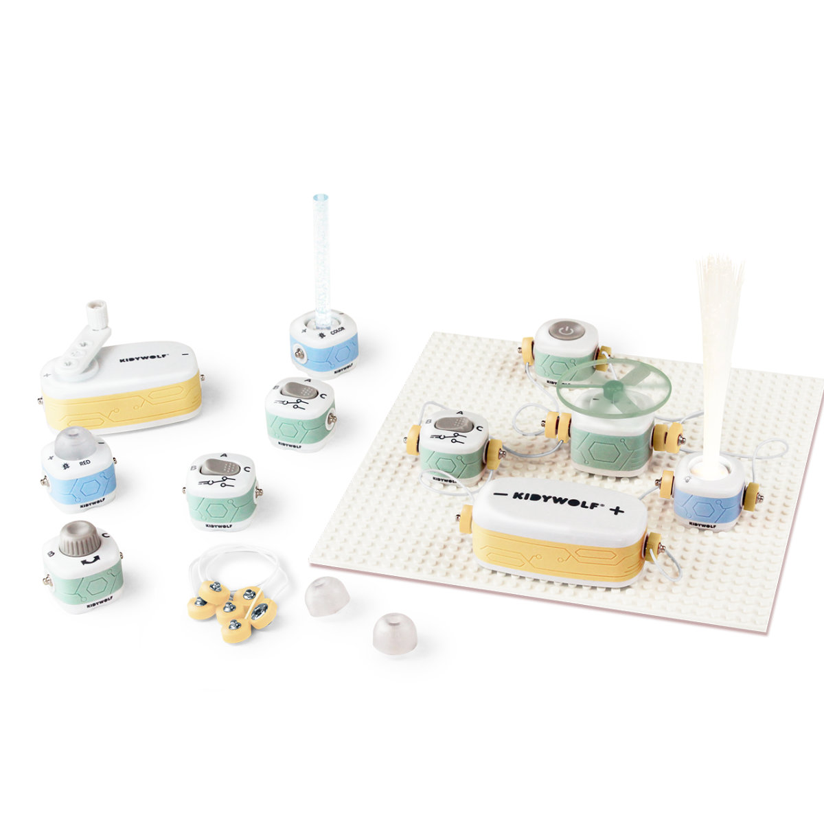 Mit dem Kidywolf Kidyelec Starter Set entdecken Kinder ab 6 Jahren die spannende Welt der Elektrizität. Sie bauen eigene Schaltkreise, probieren Ideen aus und erleben sofort, wie Strom funktioniert – spielerisches Lernen voller Aha-Momente.