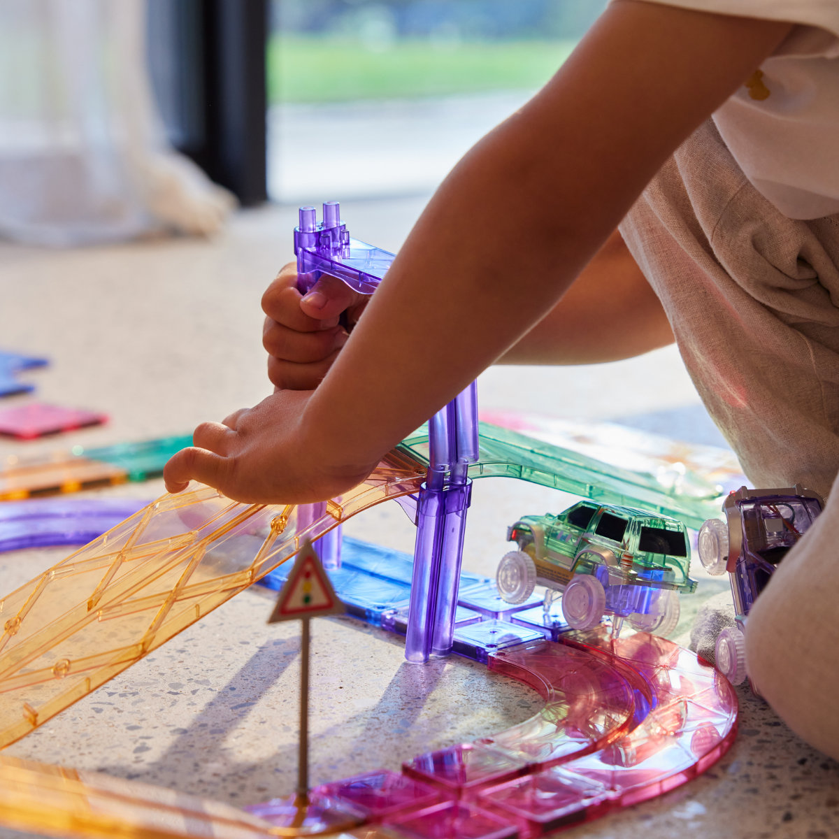 Der Autobahn-Bausatz bietet nicht nur Spaß, sondern auch viele Lernchancen. Während du deine Strecke baust, übst du wichtige Fähigkeiten:
