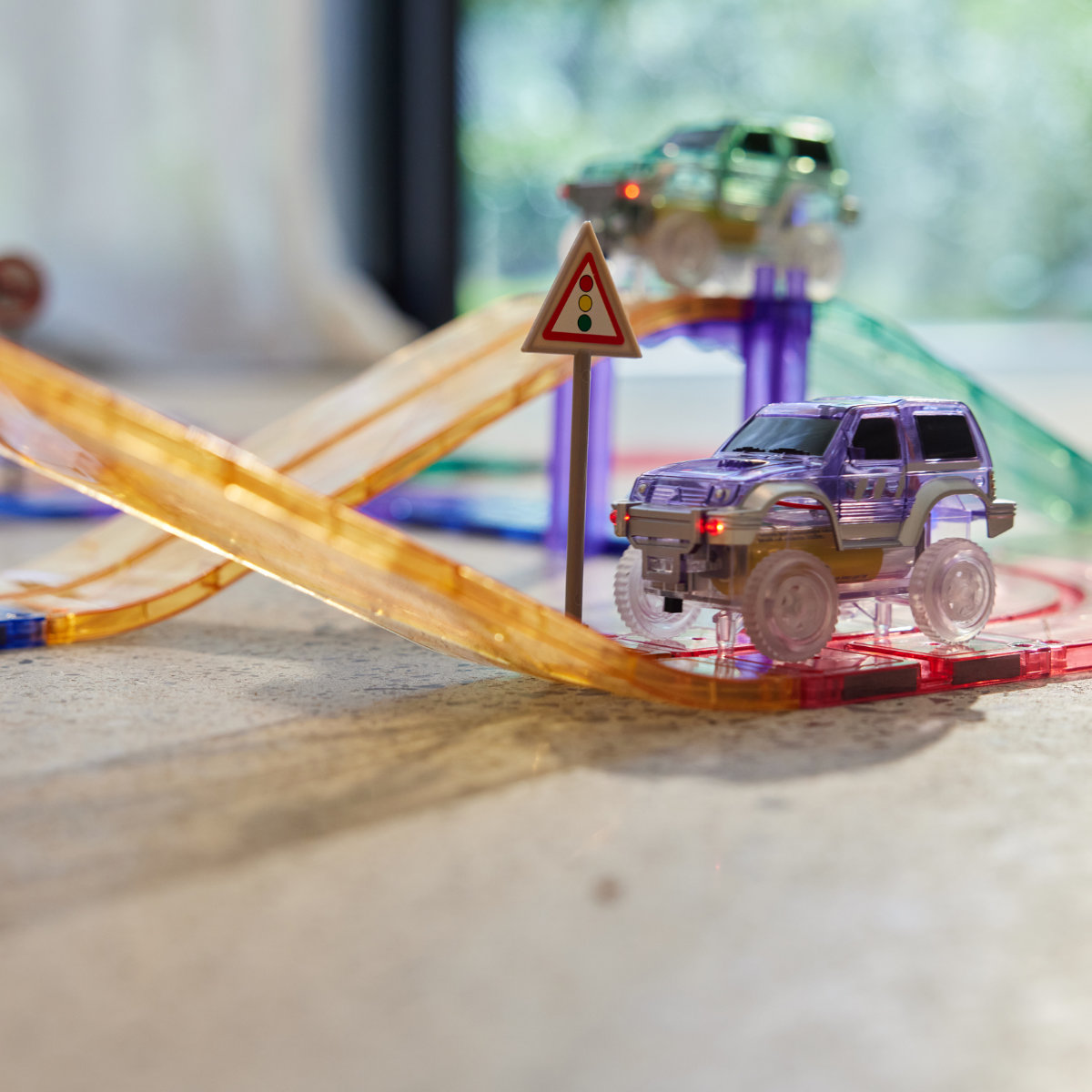 - Stabil & sicher: Dank cleverem Design bleiben die Fahrzeuge in der Bahn und sorgen für endloses Rennvergnügen.