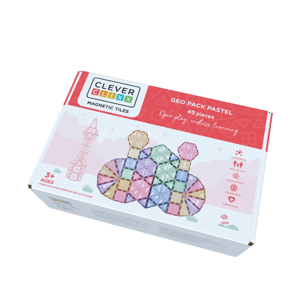 Der Cleverclixx Geometrie-Bausatz Pastell – 45 Magnetbausteine ist perfekt, um Kinder spielerisch an Geometrie, räumliches Denken und kreative Bauideen heranzuführen. Ein tolles Geschenk für kleine Baumeister und eine ideale Ergänzung zu bestehenden Magnetsets.
