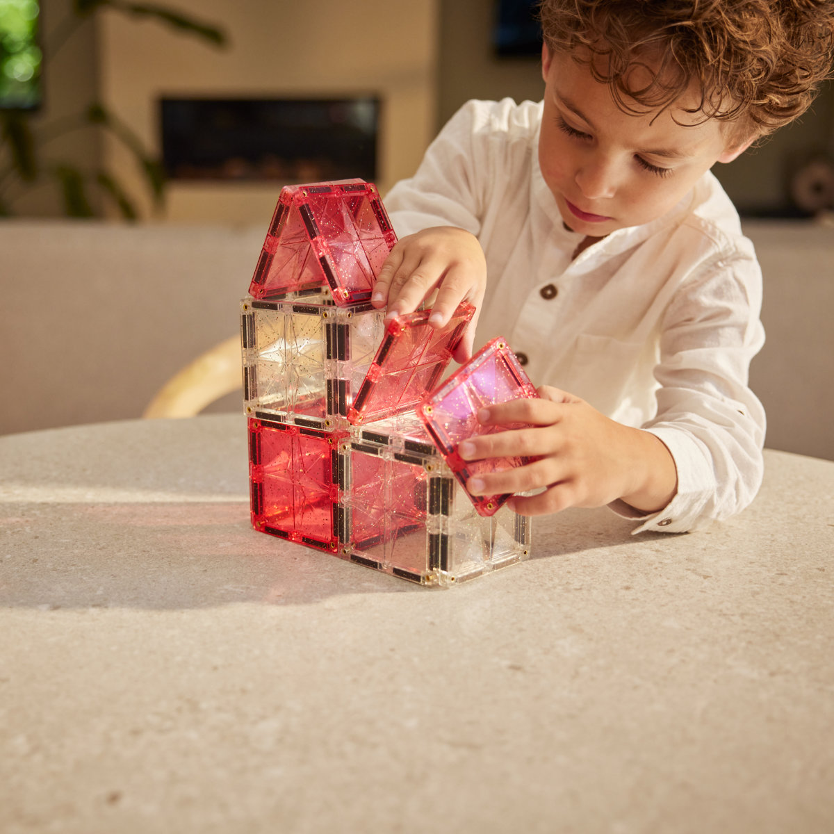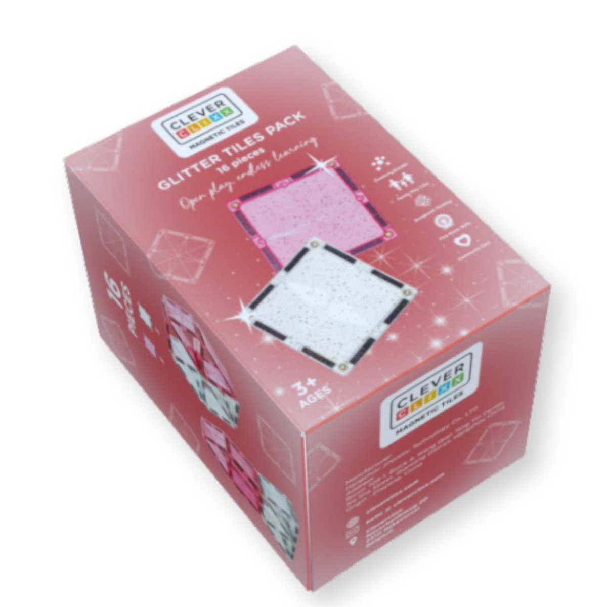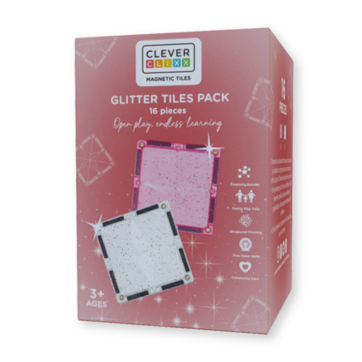 Das Glitter Tiles Pack ergänzt jede Cleverclixx-Kollektion und ist mit anderen Marken wie Connetix, Magna-Tiles und Coblo kompatibel – so entstehen noch größere Bauabenteuer.