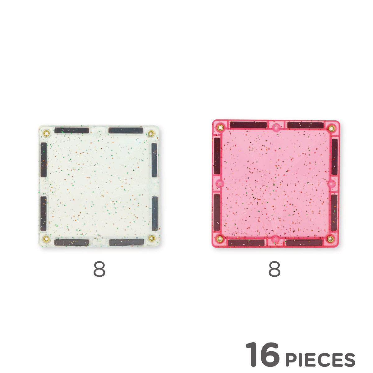 - 16 Quadrate (Transparent/Rosa mit Glitzer)