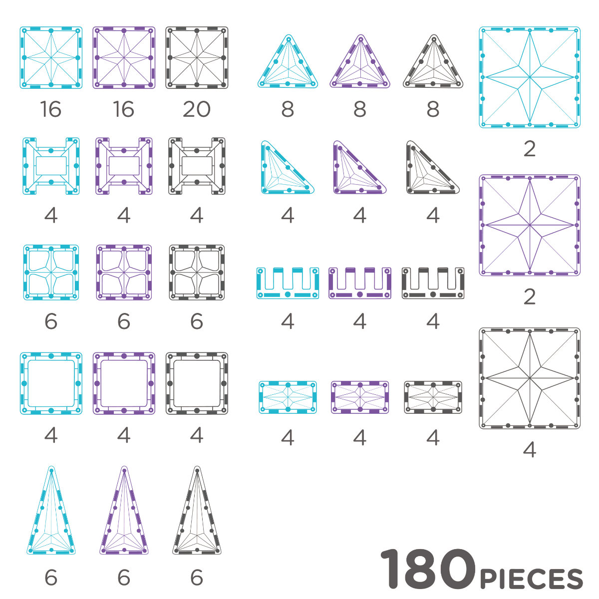- Riesige Vielfalt: 180 Magnetteile in unterschiedlichen Formen und Größen.