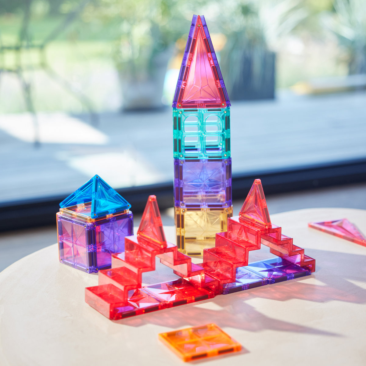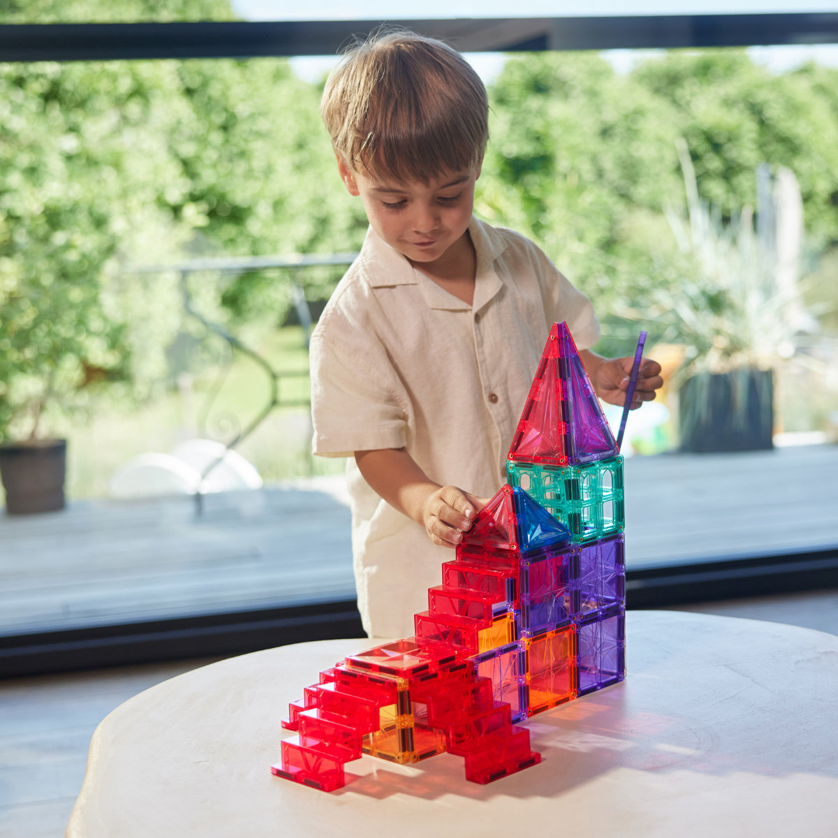 Die Teile bestehen aus robustem MABS-Kunststoff, sind BPA-frei und mit starken Magneten ausgestattet, damit Bauwerke stabil bleiben. Erfüllt alle relevanten Sicherheitsnormen (CPSC, CE, EN71, ASTM). Geeignet ab 3 Jahren.