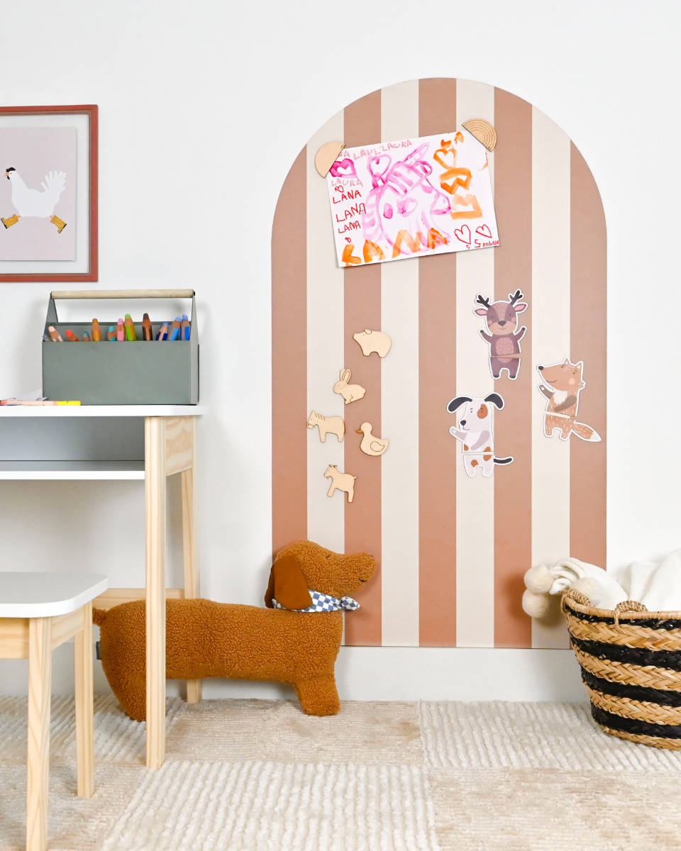 Mit der Ferflex Magnetischen Tafel in Bogenform, gestreift erhältst du eine moderne, dekorative und äußerst praktische Lösung für deine Wände. Die weiche Bogenform und das dezente Streifenmuster verleihen jedem Raum – ob Küche, Flur, Kinderzimmer, Büro oder Schlafzimmer – einen besonderen Akzent.