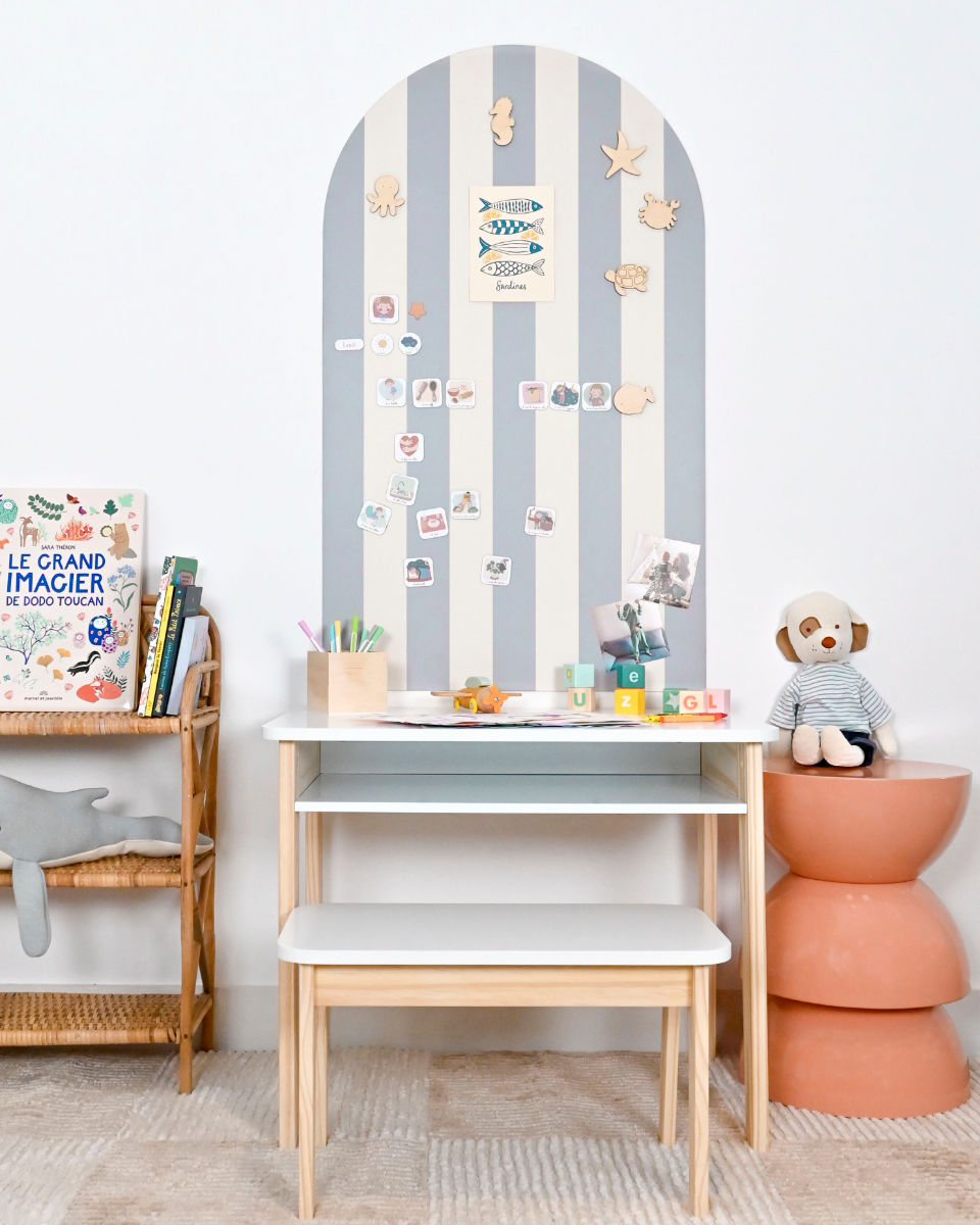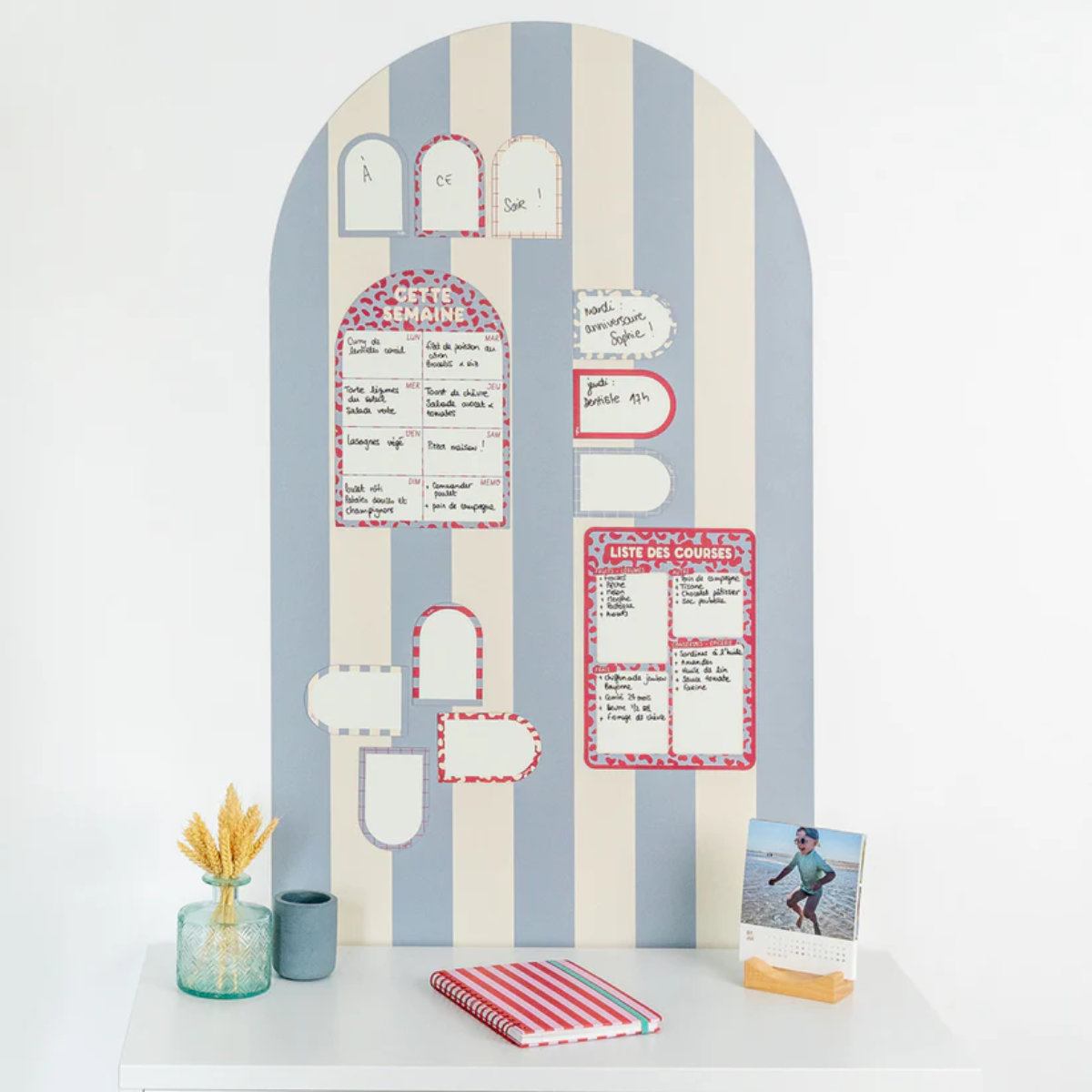 Mit der Ferflex Magnetischen Tafel in Bogenform, gestreift erhältst du eine moderne, dekorative und äußerst praktische Lösung für deine Wände. Die weiche Bogenform und das dezente Streifenmuster verleihen jedem Raum – ob Küche, Flur, Kinderzimmer, Büro oder Schlafzimmer – einen besonderen Akzent.