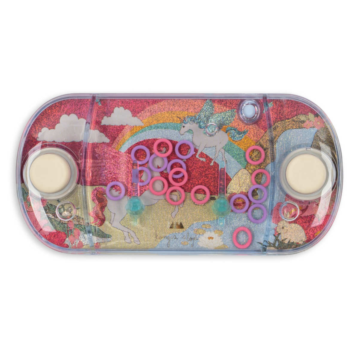 Das Konges Sløjd Wasserringspiel fordert Kinder auf spielerische Weise heraus. Mit leichtem Druck auf die Knöpfe werden die Ringe im Wasser bewegt und sollen möglichst geschickt auf die Stifte platziert werden.