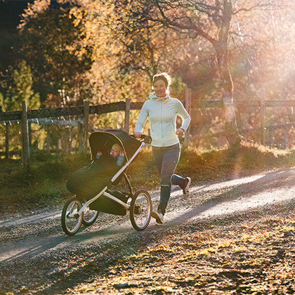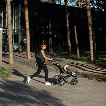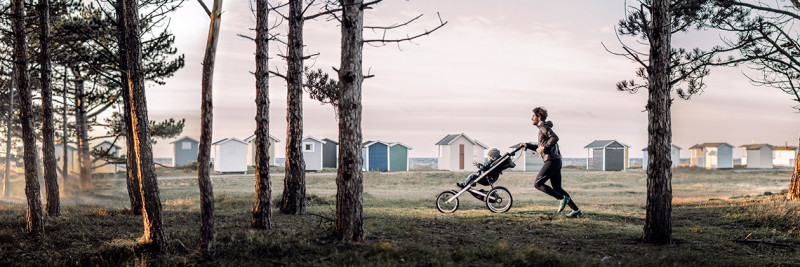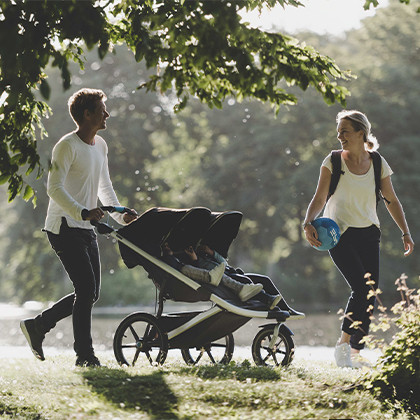 Die Thule Kinderwagen sind auf unebenem Gelände leicht zu manövrieren. Thule Urban Glide2, Thule Glide2 Jet, Thule Sleek und Thule Urban Double2 können von Geburt an mit einer Thule Babywanne verwendet werden.